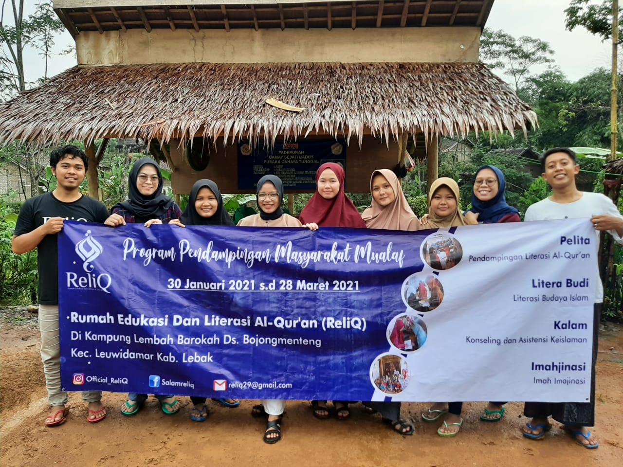 Lebak – Sebagai upaya dari pemberdayaan masyarakat, Rumah Edukasi dan Literasi al-Qur’an (ReliQ) mengadakan kegiatan pendampingan masyarakat mualaf di Lembah Barokah Ciboleger (LBC) Desa Bojongmenteng Kecamatan Leuwidamar Lebak Banten mulai 30 Januari 2021 hingga 28 Maret 2021.