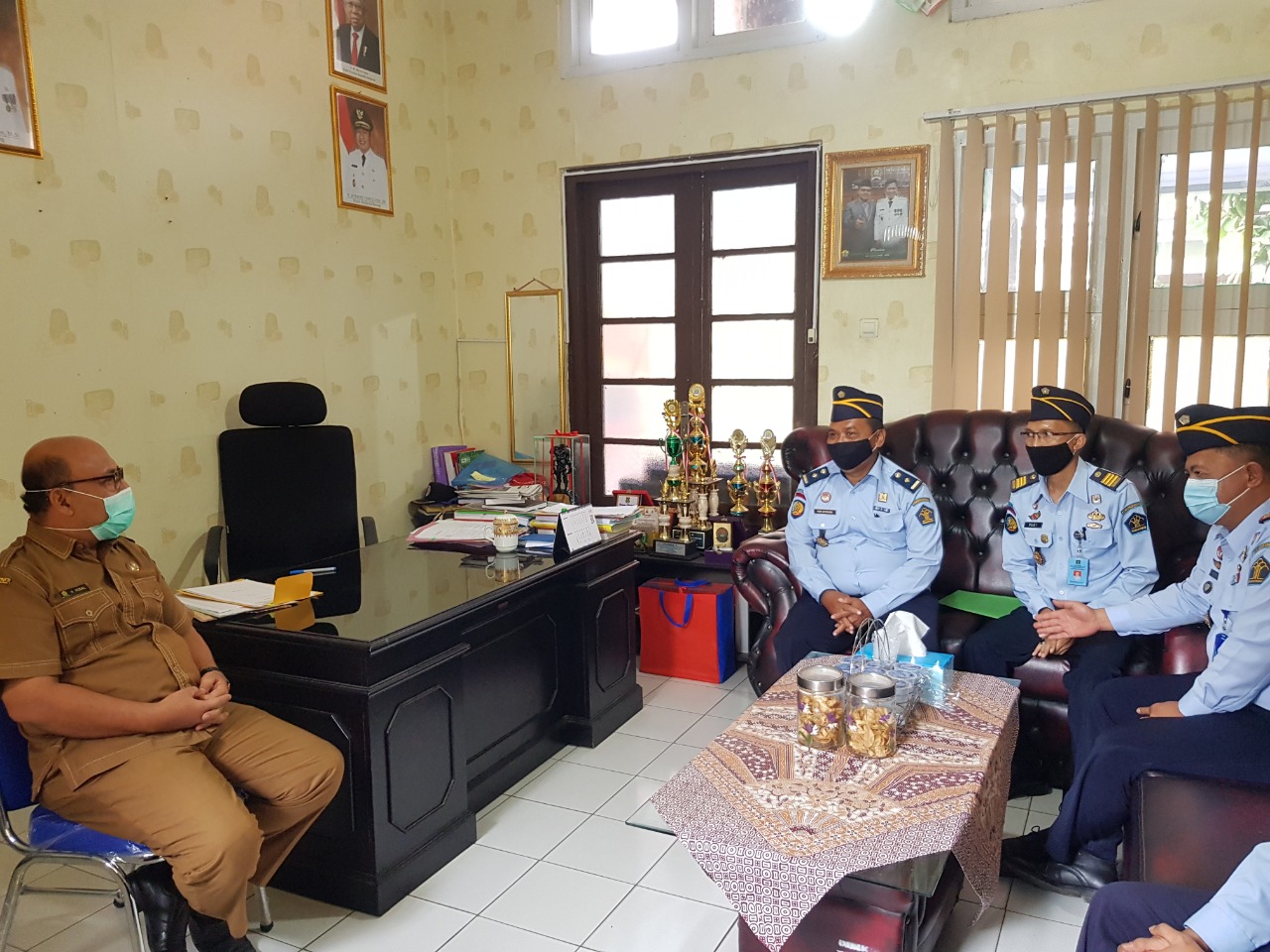 Kepala Lapas Kelas IIA Serang, Heri Kusrita dengan didampingi Kepala Seksi Binadik Rudi Hartono, Kepala Sub Bagian TU Budi Sutrisno, Kepala Sub Seksi Bimaswat Darto, serta Tenaga Kesehatan Lapas Serang drg.Singgih Noh SP, mendatangi Dinkes Kota Serang guna membicarakan persiapan dan pelaksanaan vaksinasi.