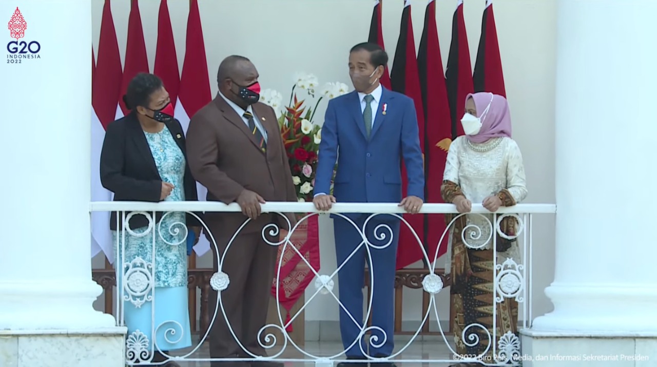Kemudian, Presiden Jokowi dan PM Marape serta Ibu Iriana Jokowi dan Ibu Rachael Marape memasuki Istana untuk melaksanakan foto bersama yang dilanjutkan dengan penandatanganan buku tamu.