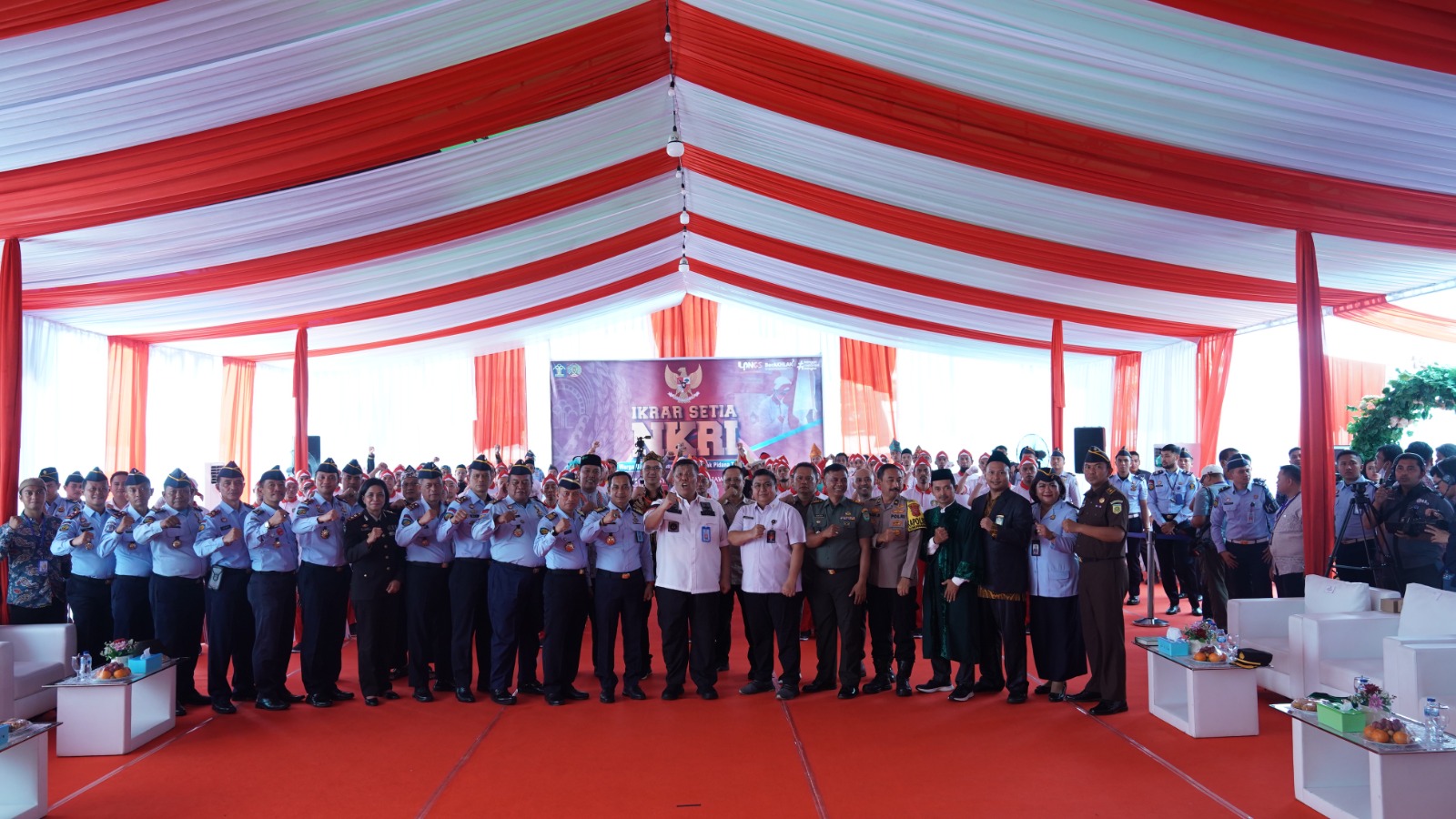 Selain itu, dilaksanakan penandatangan monumen Ikrar NKRI oleh Kepala Kantor Wilayah Kemenkumham Jabar disaksikan oleh Kepala UPT Pemasyarakatan wilayah Jawa Barat dan Forkopimda Kabupaten Bogor.