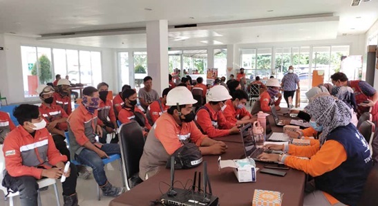 “ Senada Adul Kusmono Kepala Corvorate Sosial Responsibility ( CSR ) PT Cemindo Gemilang Tbk “ Juga membenarkan bahwa hari ini BIN Banten bersama Puskesmas Bayah telah menggelar vaksinasi terhadap 1000 karyawan, Ujarnya.