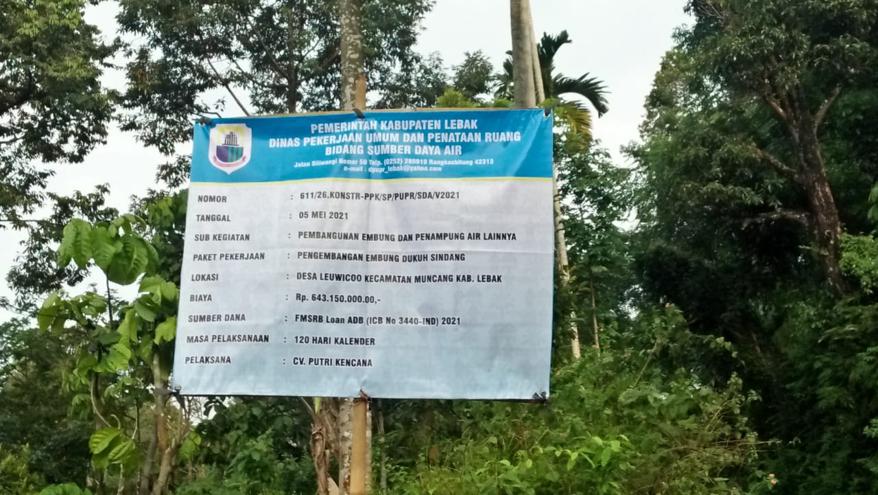 Pemerintah Kabupaten mempunyai percepatan pembangunan di kabupaten Lebak memang cukup terasa, baik di wilayah pedesaan apalagi di pusat perkotaan, bagi dalam bidang infrastruktur jalan, gedung pendidikan, sampai Pertanian, dengan motto Lebak memvangun, namun sayangnya masih ada saja masih ada oknum yang mencoreng nama baik yang merusak motto tersebut, bukti yang nyata pada Pembangunan Embung Desa Leuwi Coo Kecamatan Muncang, Kabupaten Lebak, Baru saja di bangun sudah jebol, peristiwa ini jelas sangat mencoreng nama baik Kabupaten Lebak, sehingga menjadi sorotan dari para aktivis yang ada di Kabupaten Lebak.
