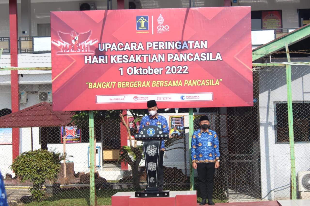 SERANG – Hari Kesaktian Pancasila merupakan hari nasional di Indonesia yang diperingati setiap 1 Oktober pada setiap tahunnya. Peringatan ini bertujuan untuk meneguhkan Pancasila sebagai ideologi utama Bangsa Indonesia. Dalam memperingati Hari Kesaktian Pancasila Tahun 2022, Lembaga Pemasyarakatan (Lapas) Kelas IIA Serang Kanwil Kemenkumham Banten melaksanakan upacara, Sabtu (01/10).