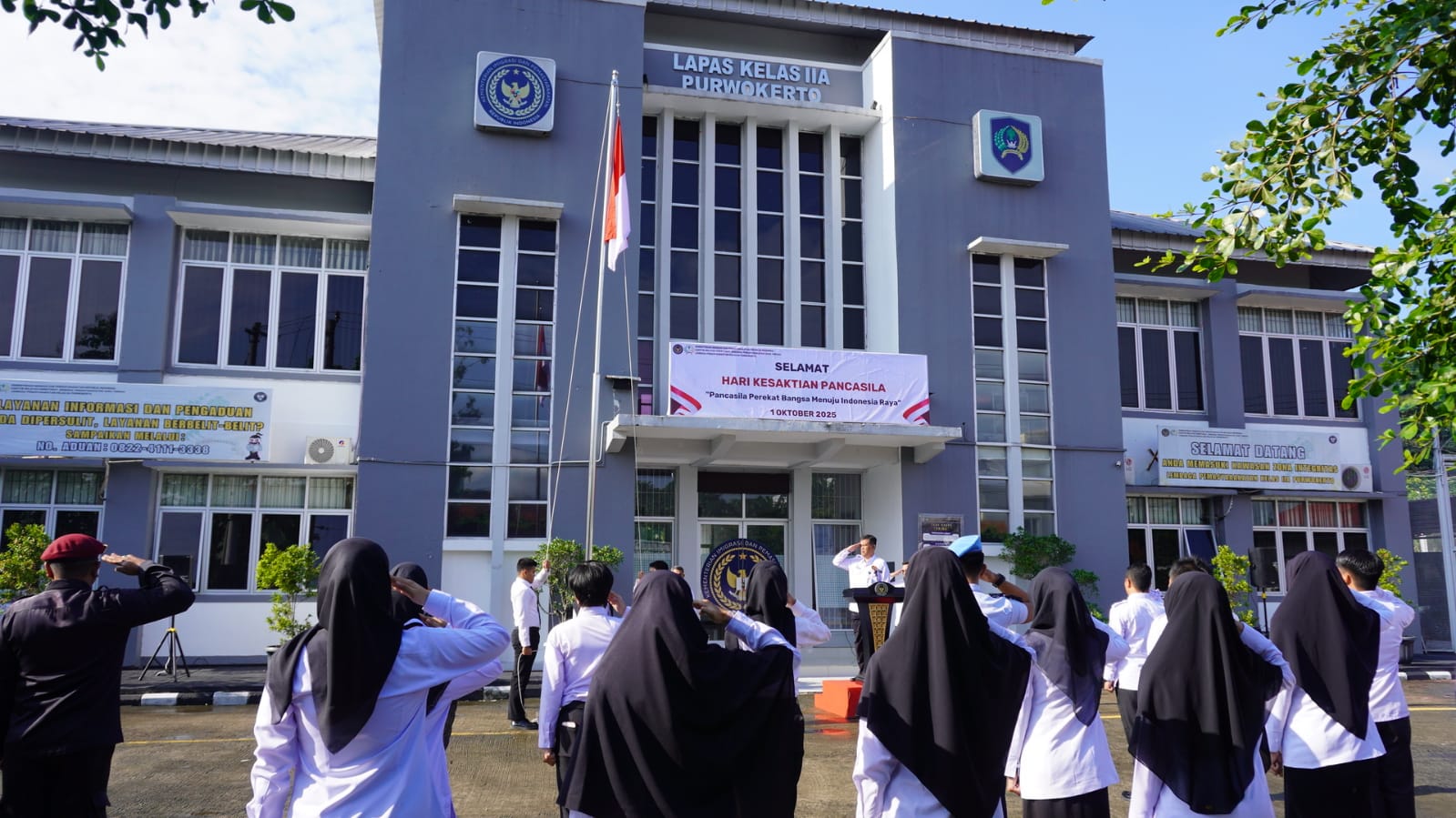Purwokerto, 1 Oktober 2025 – Lembaga Pemasyarakatan (Lapas) Purwokerto melaksanakan upacara peringatan Hari Kesaktian Pancasila pada Rabu (1/10) pagi. Upacara berlangsung khidmat di halaman Lapas dengan mengusung tema nasional “Pancasila Perekat Bangsa Menuju Indonesia Raya.”