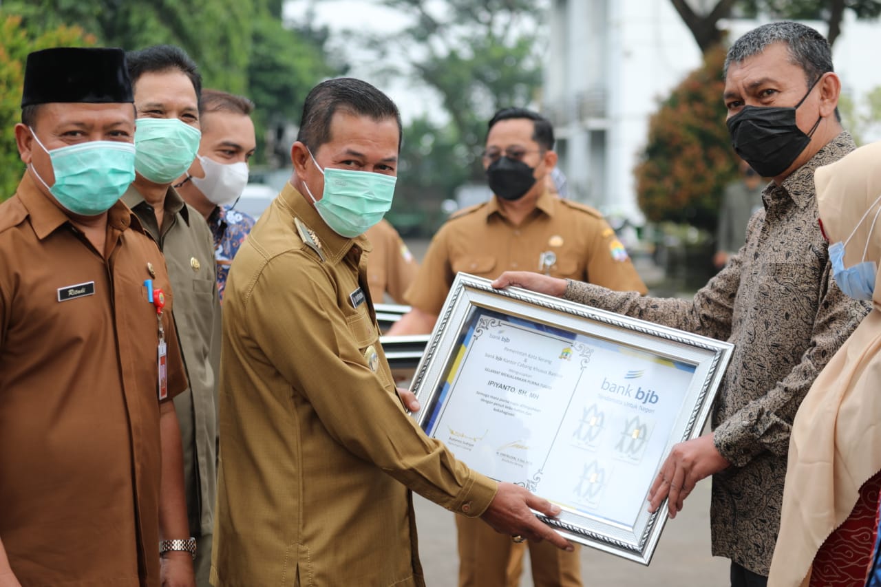 SERANG–, Walikota Serang, H. Syafrudin memimpin pelaksanaan Apel Pagi yang dirangkaikan dengan Penyerahan secara simbolis Tanda Mata bagi PNS Purna Bhakti di Lingkungan Puspemkot Serang. Senin (01/11/2021).
