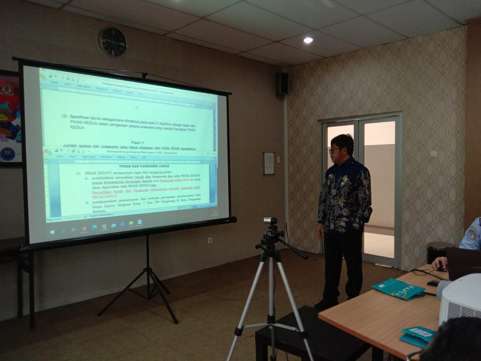 TANGERANG – Kepala Divisi Keimigrasian Kantor Wilayah Kemenkumham Banten, Ujo Sujoto memimpin rapat terkait nota kesepakatan pembentukan unit kerja Kantor Imigrasi Kelas I Non TPI Tangerang di Kota Tangerang Selatan.