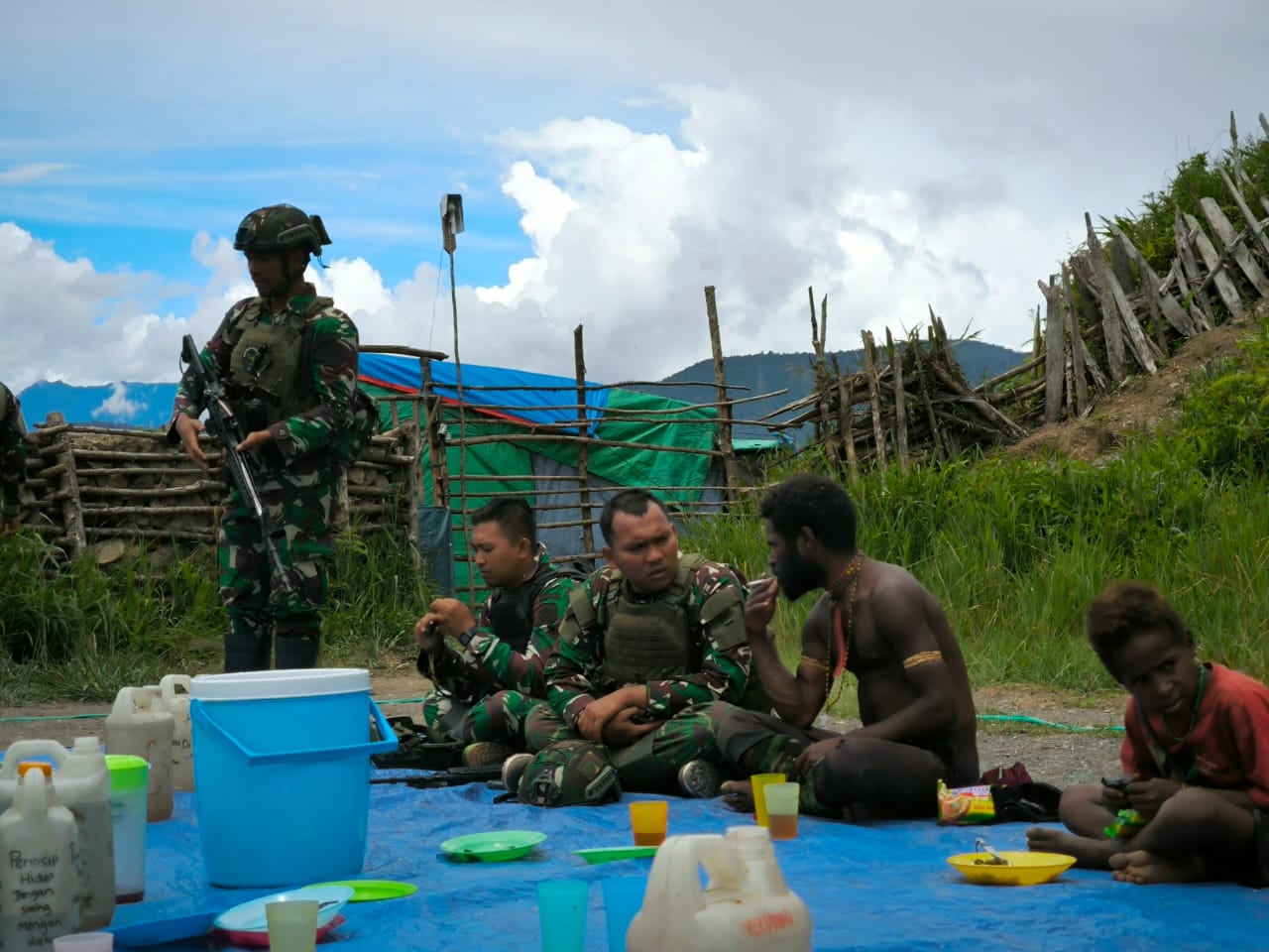 Personel Pos Pintu Jawa yang berada di Kampung Wombru, tidak ragu untuk menunjukkan keramahannya dan kedekatannya kepada penduduk kampung, Indahnya kebersamaan dalam perbedaan merupakan hal yang luar biasa, kegiatan makan siang bersama ini merupakan sarana untuk mendekatkan diri kepada penduduk asli Suku Dani.