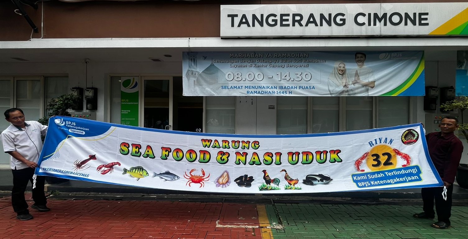 “Terima kasih atas partisipasi support dari BPJS Ketenagakerjaan dalam bentuk spanduk sebanyak 30 pcs. Dimana spanduk ini akan dipasang di 30 Outlet warung seafood nasi uduk dan pecel lele yang sudah terlindungi program BPJS Ketenagakerjaan,” ucap Wastadi.