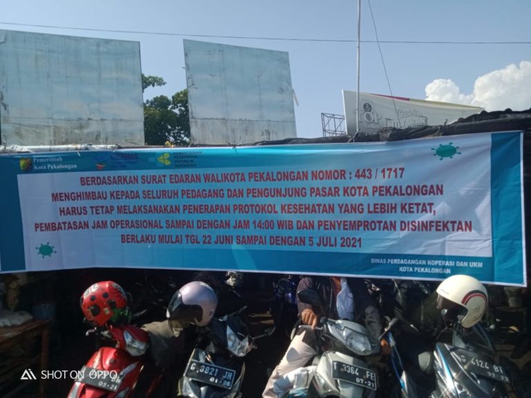 Hal itu disampaikan Kepala Bidang Pasar dan Pembinaan Pedagang Kaki Lima pada Dinas Perdagangan, Koperasi, dan Usaha Kecil Menengah (Dindagkop-UKM) Deddy Setyawan, saat dikonfirmasi via telepon, Jumat (2/7/2021). Dijelaskan, sesuai Instruksi Gubernur Jawa Tengah dan Surat Edaran (SE) Wali Kota Pekalongan, diatur untuk menekan angka penyebaran Covid-19, Pemerintah Kota Pekalongan hanya membatasi jam operasional pasar hingga pukul 14.00. Jauh lebih awal ketimbang yang tertera dalam Peraturan Daerah (Perda) sebelumnya, di mana pasar bisa dibuka hingga pukul 18.00 WIB.