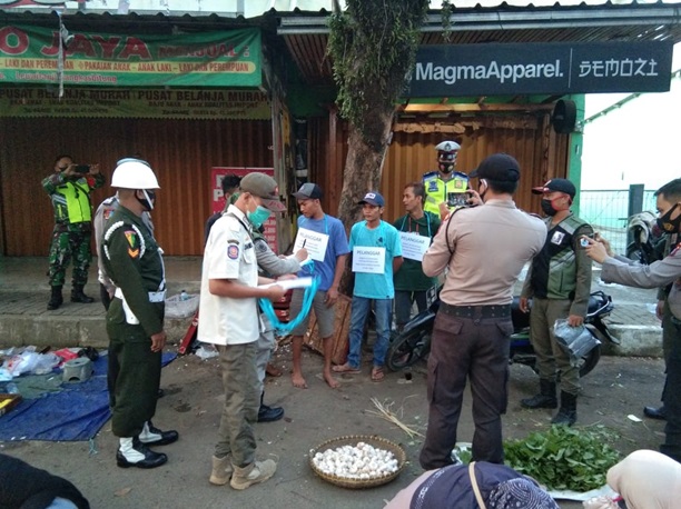 LEBAK – Petugas gabungan TNI-Polri-Satpol PP -Subdenpom Lebak dan Dishub Kabupaten Lebak,melaksanakan operasi uji coba Peraturan Bupati (Perbup) nomor 28 tahun 2020,razia masker kali ini menyasar ke pedagang kaki lima dipasar Rangkasbitung.