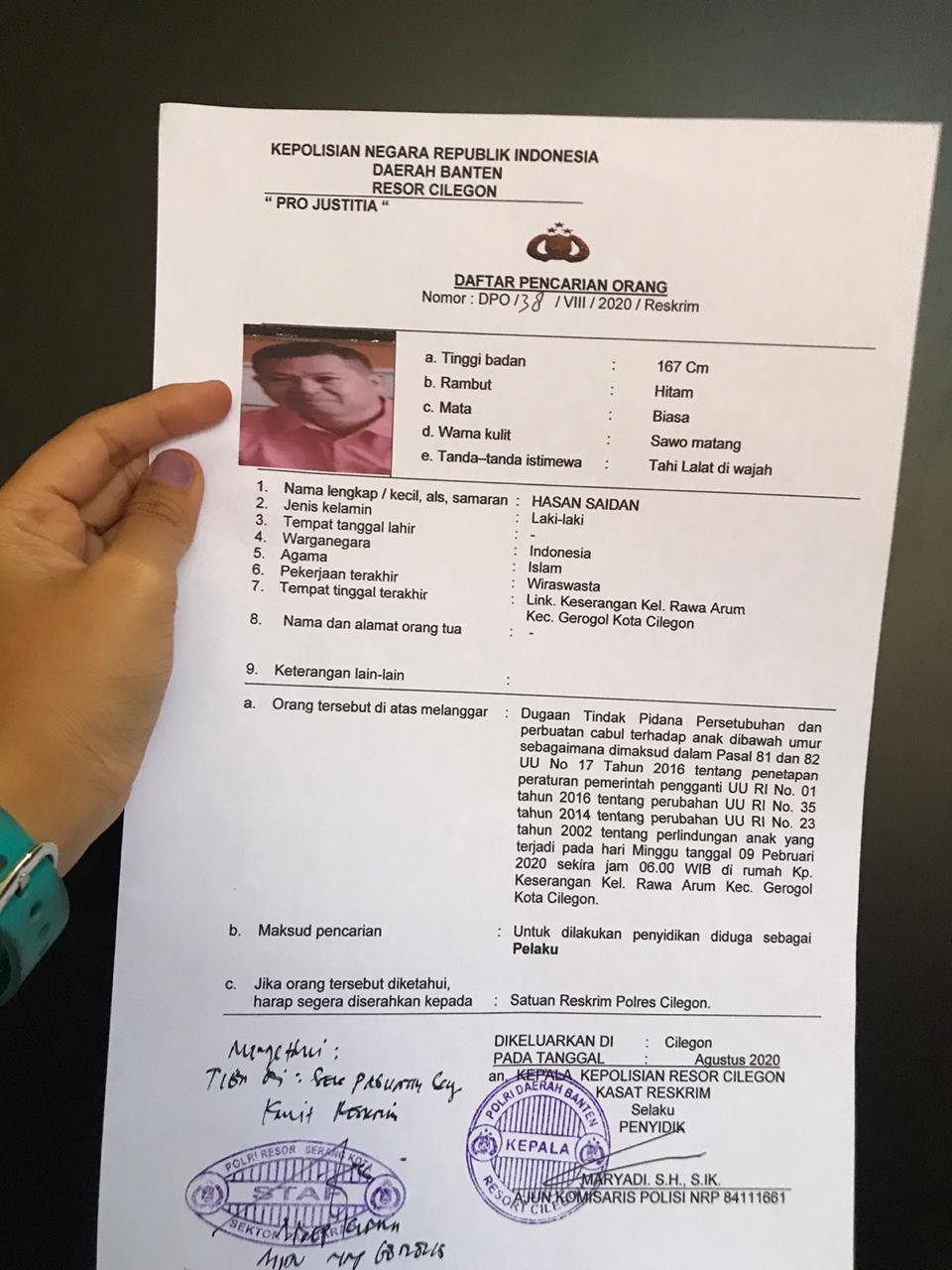 Terduga Pelaku Perkosaan Dibawah Umur di Cilegon Ditetapkan DPO
