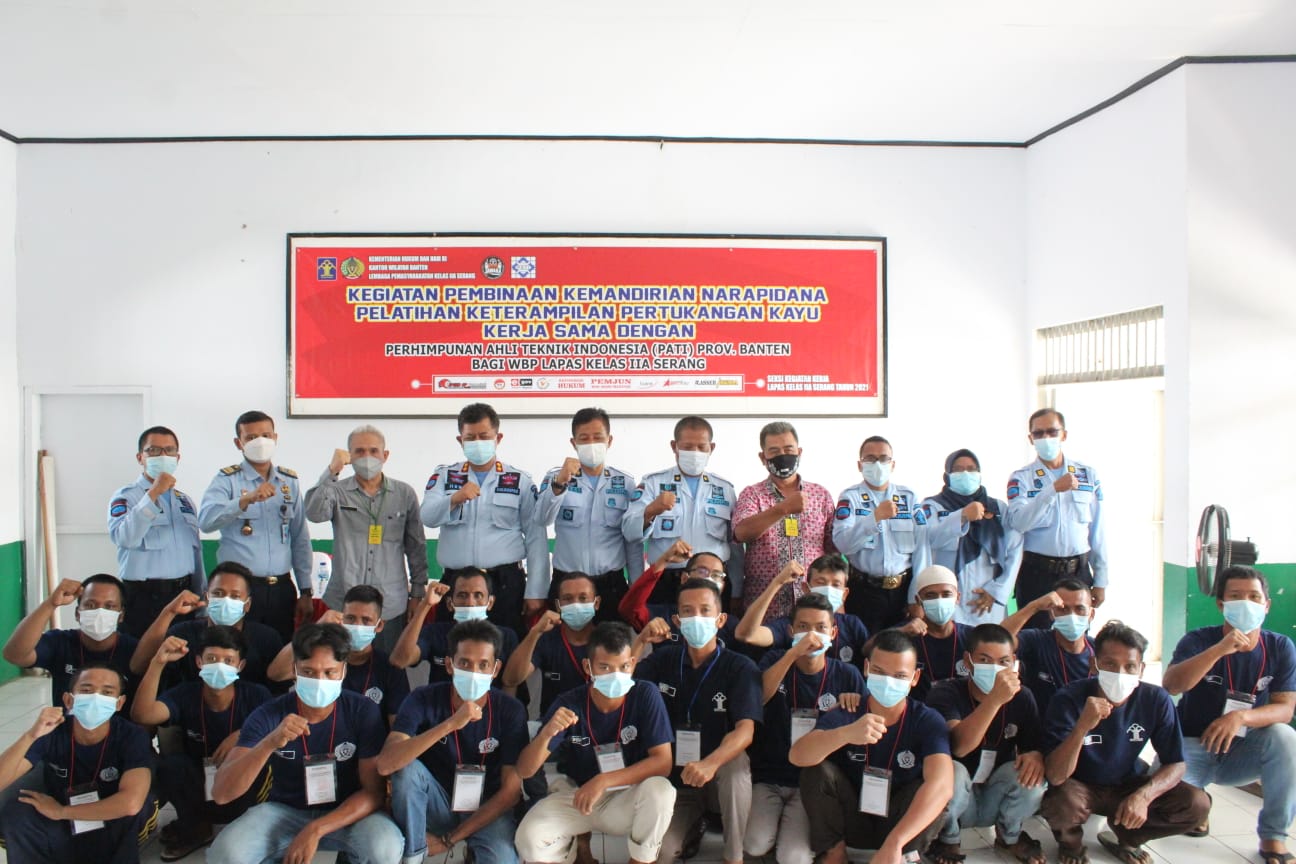 Siberindo.co – Bekerjasama dengan Perhimpunan Ahli Teknik Indonesia (PATI) Provinsi Banten, Lapas Kelas IIA Serang melaksanakan kegiatan Pembukaan Pembinaan Kemandirian bidang Jasa Pelatihan Keterampilan Pertukangan Kayu bagi Warga Binaan. Kamis (02/09)