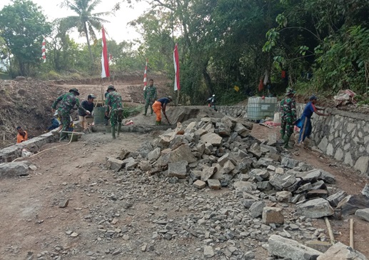 Kemudian dalam pekerjaan TPT ini dikerjakan oleh Batalyon 230/BP, Lanal, Polres dan juga dari masyarakat setempat untuk bekerjasama melaksanakan pembangunan TPT, adapun gunanya TPT adalah untuk menahan tanah agar tidak longsor,”ucap Bamin Op TMMD Kodim Cilegon.