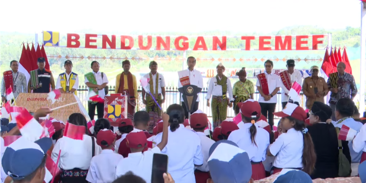 “Dan dengan rahmat Tuhan Yang Maha Esa, pada pagi hari ini saya resmikan Bendungan Temef di Kabupaten Timor Tengah Selatan, Provinsi Nusa Tenggara Timur,” pungkasnya.
