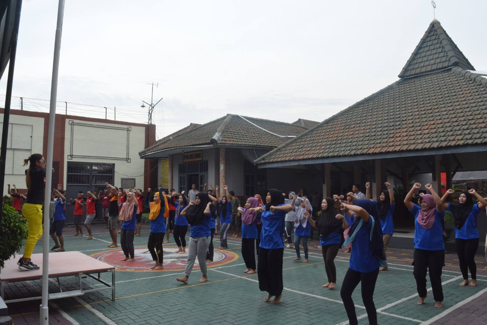 Para pegawai rutan dan blok wanita terlihat begitu antusias, bersemangat untuk meraih manfaat kesehatan yang ditawarkan oleh rutin senam pagi ini. Meskipun langit mendung, semangat mereka tak tergoyahkan. Gerakan-gerakan senam terkoordinasi dengan baik, menciptakan harmoni di antara peserta yang beragam. Halaman utama rutan yang biasanya tampak ketat dan serius, kini dipenuhi tawa dan senyuman dari para peserta senam.