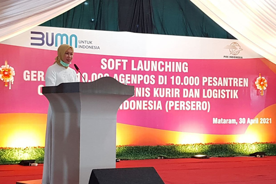 Launching Agen Pos di Mataram ditandai dengan diresmikannya Agen Pos di pesantren Nurul Haramain Kota Mataram pada Jumat (30/4/2021). Hadir meresmikan kerja sama tersebut Direktur Bisnis Kurir dan Logistik PT Pos Indonesia (Persero) Siti Choiriana beserta jajaran Pos Indonesia, Wakil Gubernur Provinsi NTB Siti Rohmi Djalillah, dan para pejabat lainnya.