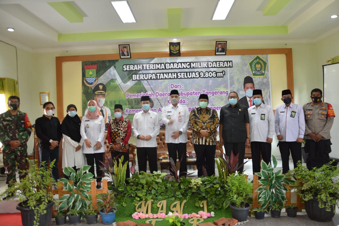 Penyerahan tersebut dilakukan di Aula MAN 1 Tigaraksa, dalam acara serah terima barang milik daerah tersebut tanah seluas 9806 M2 dari Pemerintah Daerah Kabupaten Tangerang diserahkan kepada Kementerian Agama Kabupaten Tangerang.