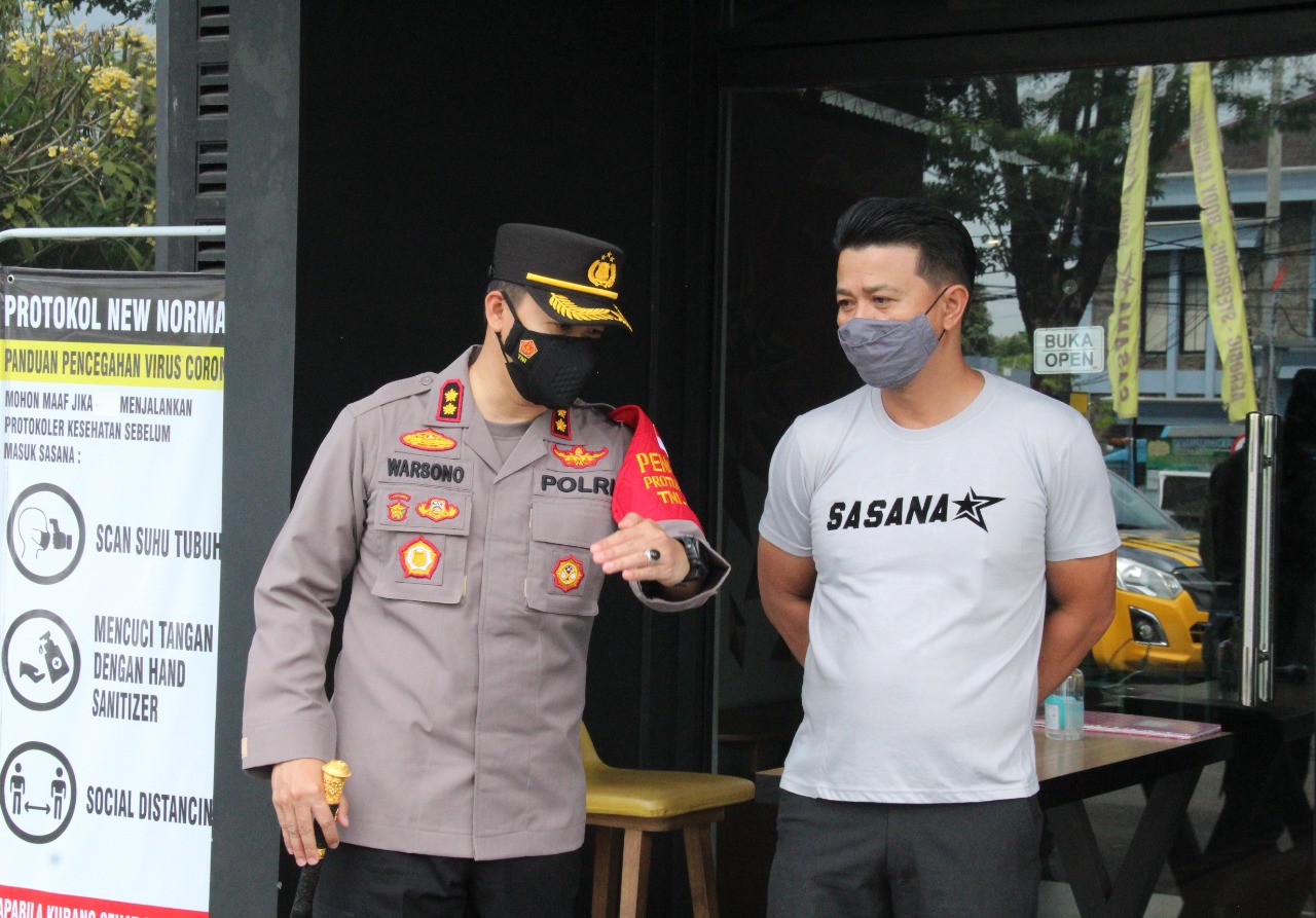 Jepara – Tribratanews.jateng.polri.go.id | Kapolres Jepara AKBP Warsono, SH., SIK., MH., pagi ini mengecek kegiatan masyarakat di swalayan dan penutupan sementara sport center menindaklanjuti aturan PPKM Darurat di Kabupaten Jepara, Sabtu (03/07/2021).