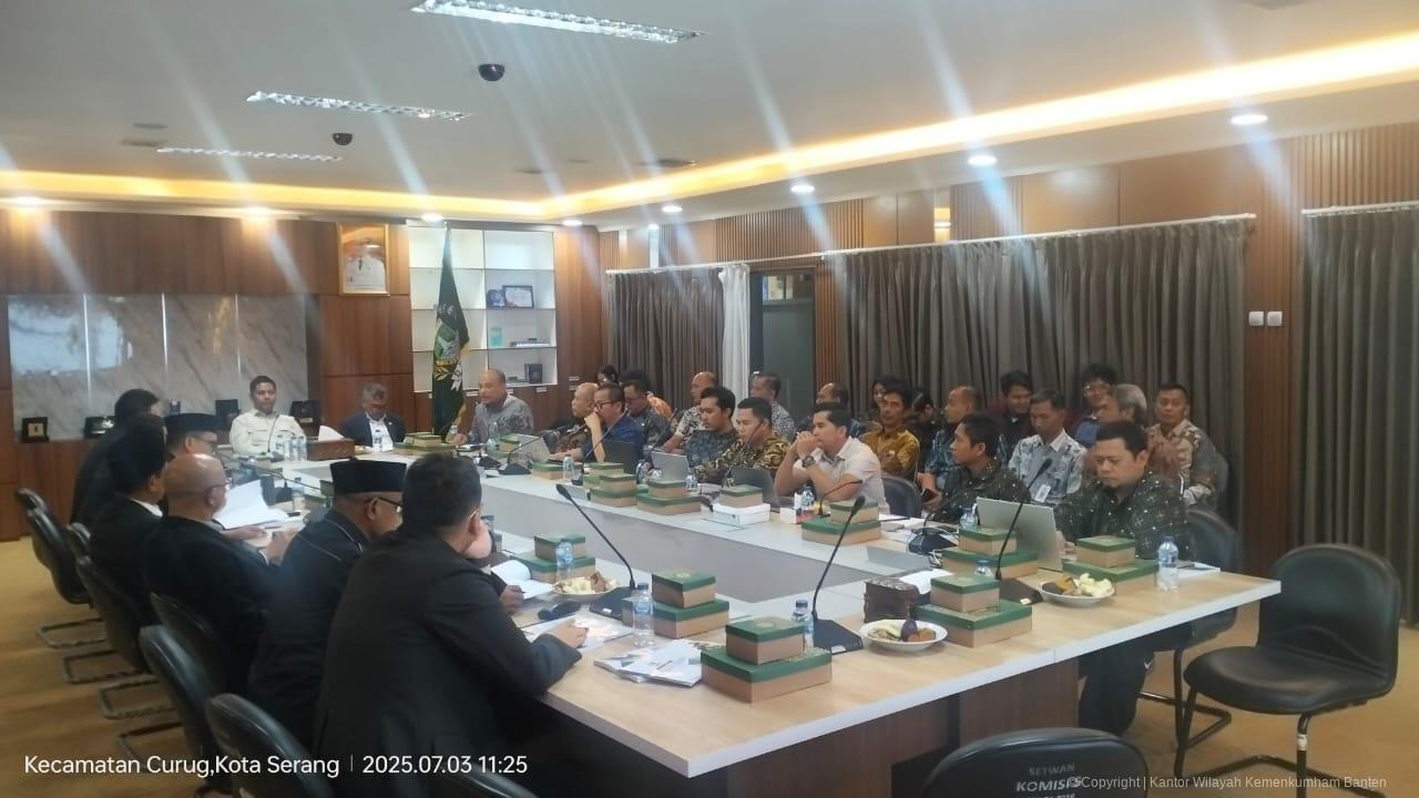 Rapat tersebut dipimpin oleh Sekretaris Komisi V DPRD dan dihadiri oleh Wakil Ketua DPRD, Ketua dan Wakil Ketua Komisi V DPRD Provinsi Banten, anggota Komisi V DPRD, Kepala Kantor Wilayah BPJS, Biro Hukum Provinsi Banten, Dinas Ketenagakerjaan Provinsi Banten, serta perancang peraturan perundang-undangan dari Kanwil Kemenkum Banten, yaitu Huda Hardiyanto dan Suryabintara.