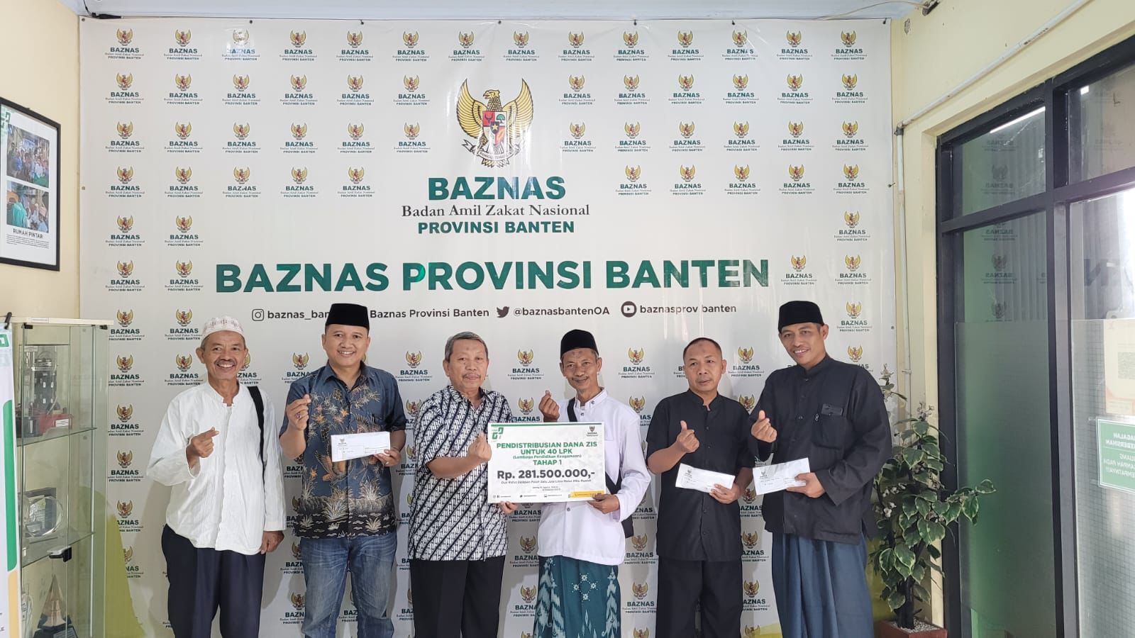 Badan Amil Zakat Nasional (Baznas) Provinsi Banten mendistribusikan dana zakat sebesar Rp. 482.000.000,- rupiah pada Kamis 3 Agustus 2023 siang. Pendistribusian dana zakat tersebut diberikan untuk sebanyak 40 Lembaga Pendidikan Keagamaan dan 28 Masjid/Mushola yang tersebar di Provinsi Banten.