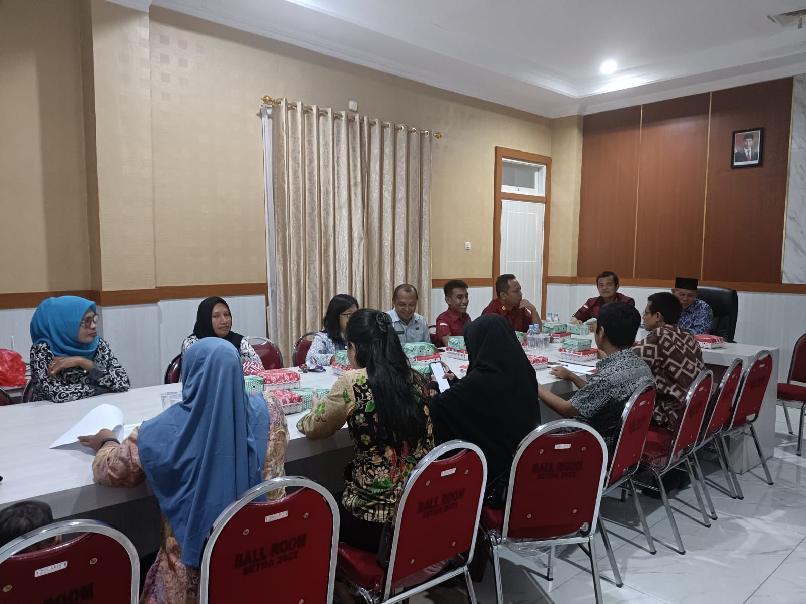 Rapat tersebut dihadiri oleh sejumlah pejabat dari Pemda Kabupaten Pulau Morotai, termasuk Asisten I Bidang Pemerintahan dan Hukum, Muchlis Baay, dan Kepala Bagian Hukum, Soleman Basri, beserta staf. Dari pihak Kanwil Kemenkumham Malut, hadir Kepala Bidang Hukum, Sarwedi Siregar, Perancang Peraturan Perundang-undangan, Rusman Pattiwael, serta staf JFU Bidang Hukum, Abdul Haris.