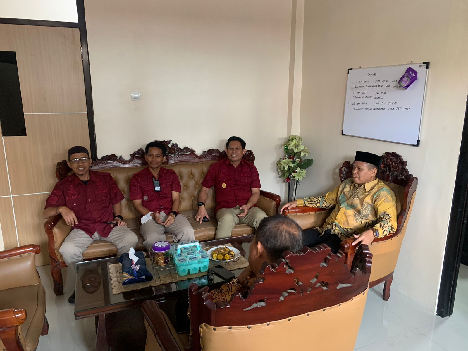 Kedatangan Kalapas Rangkasbitung, Muhamad Khapi di dampingi Kasubsi Pembinaan, Eka Yogaswara bersama jajaran disambut hangat oleh Kepala Kemenag Lebak, H. Masyhudi beserta jajaran Pejabat Struktural Kemenag Lebak.