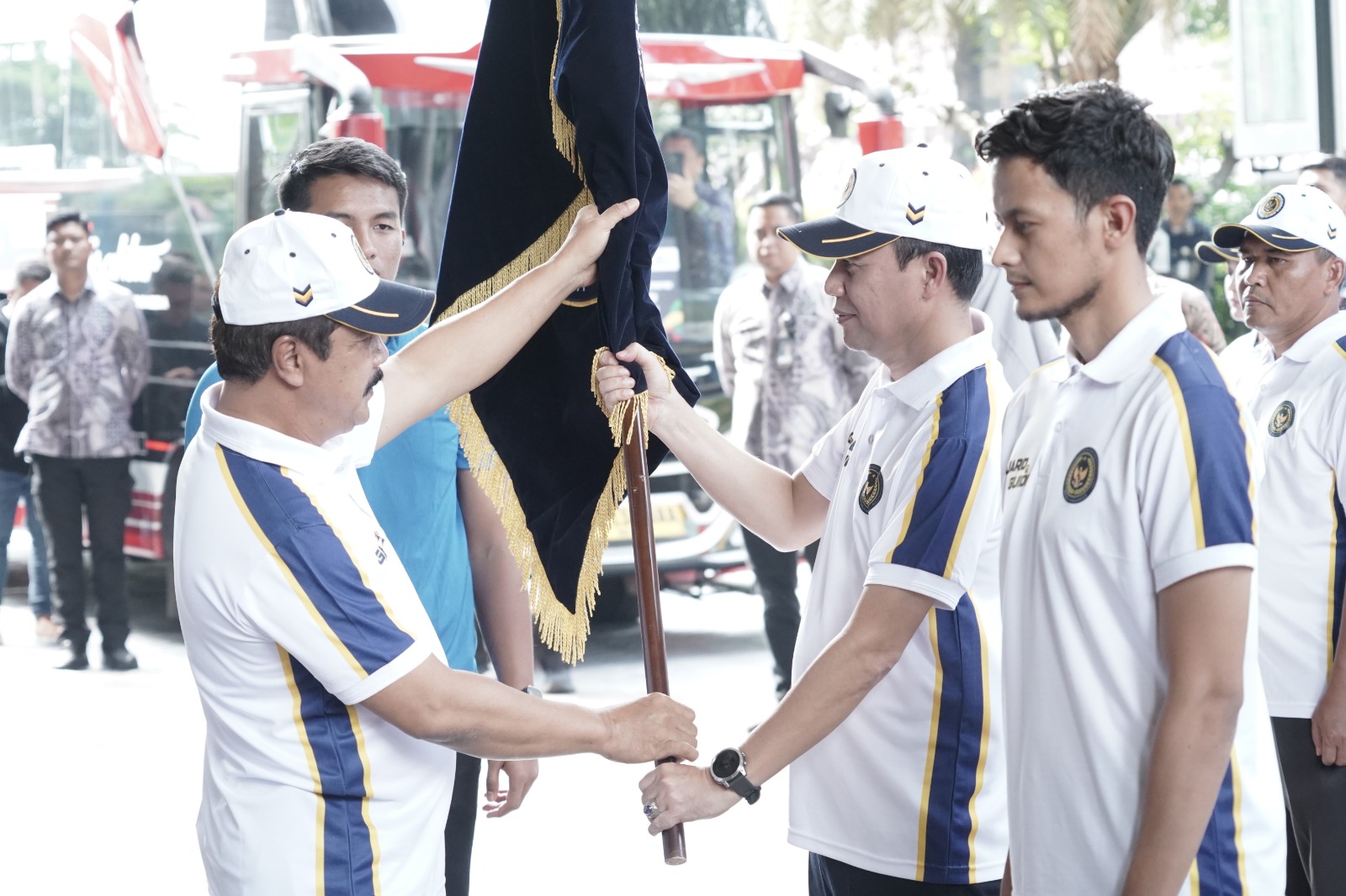 Jakarta – Menteri Imigrasi dan Pemasyarakatan, Agus Andrianto, secara resmi melepas Kontingen Korps Pegawai Republik Indonesia (disingkat KORPRI) Kementerian Imigrasi dan Pemasyarakatan (Kemenimipas) yang akan mengikuti ajang Pekan Olahraga Nasional (PORNAS) XVII KORPRI, Jumat (3/10). Acara pelepasan berlangsung khidmat di lobi gedung Kemenimipas dengan dihadiri para pejabat eselon I, II, serta jajaran pengurus KORPRI Kemenimipas.
