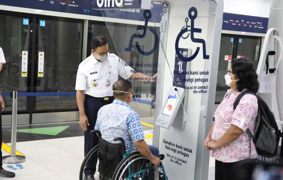 Jakarta – Pemprov DKI Jakarta bersama PT MRT Jakarta meluncurkan layanan digital ramah penyandang disabilitas, Digital Intelligent Assistant atau DINA di Stasiun MRT Bundaran Hotel Indonesia (HI), Jakarta, Jumat (3/12/2021).