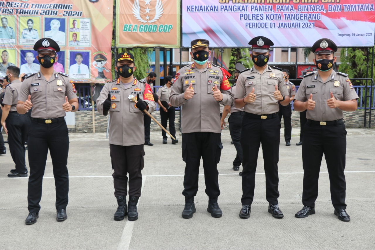 Hal itu disampaikan Ade saat memimpin Upacara Korps Rapor Kenaikan Pangkat dan Pemberian untuk personel Polresta Tangerang di Lapangan Upacara Polresta Tangerang, Senin (4/1/2021).