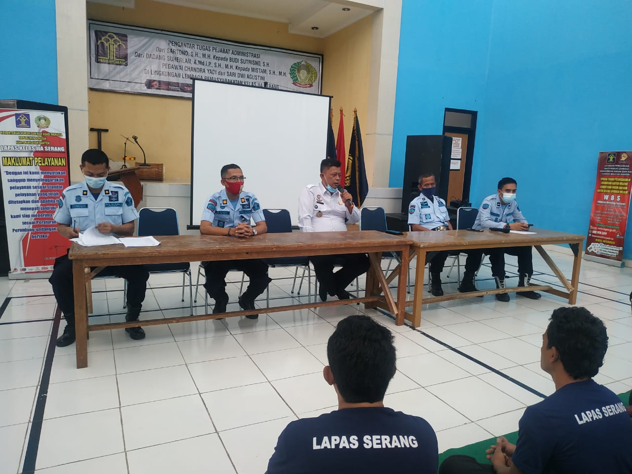 Bertempat di Aula Serbaguna Lapas Kelas IIA Serang, kegiatan tersebut dipimpin langsung oleh Kepala Lapas Kelas IIA Serang Heri Kusrita, dengan didampingi Kepala Seksi Binadik, Rudi Hartono, Kepala Subseksi Bimaswat, Darto, serta Dokter, Drg Singgih Noh PSP, Staf Bimaswat dan diikuti oleh Warga Binaan Lapas Kelas IIA Serang yang mengikuti program Rehabilitasi Medis dan Sosial Tahun 2021.