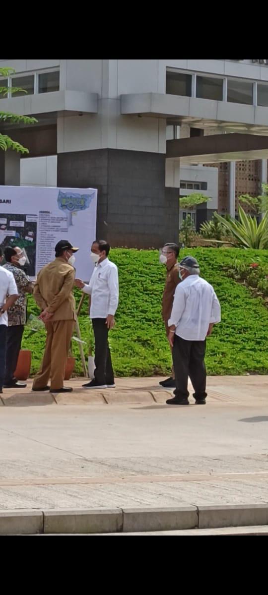 Andika tampak mengenakan seragam dinas harian kepala daerah berwarna coklat didampingi Fatah yang mengenakan kemeja batik, menyalami Jokowi yang baru turun dari mobil kepresidenan RI 1. Andika dan Fatah menyalami presiden dengan menggunakan protokol kesehatan lengkap, yaitu mengenakan sarung tangan karet, plus masker dan face shield. Jokowi yang mengenakan kemeja putih tampak menangkupkan telapak tangan di dada saat menerima salam dari Andika dan Fatah.