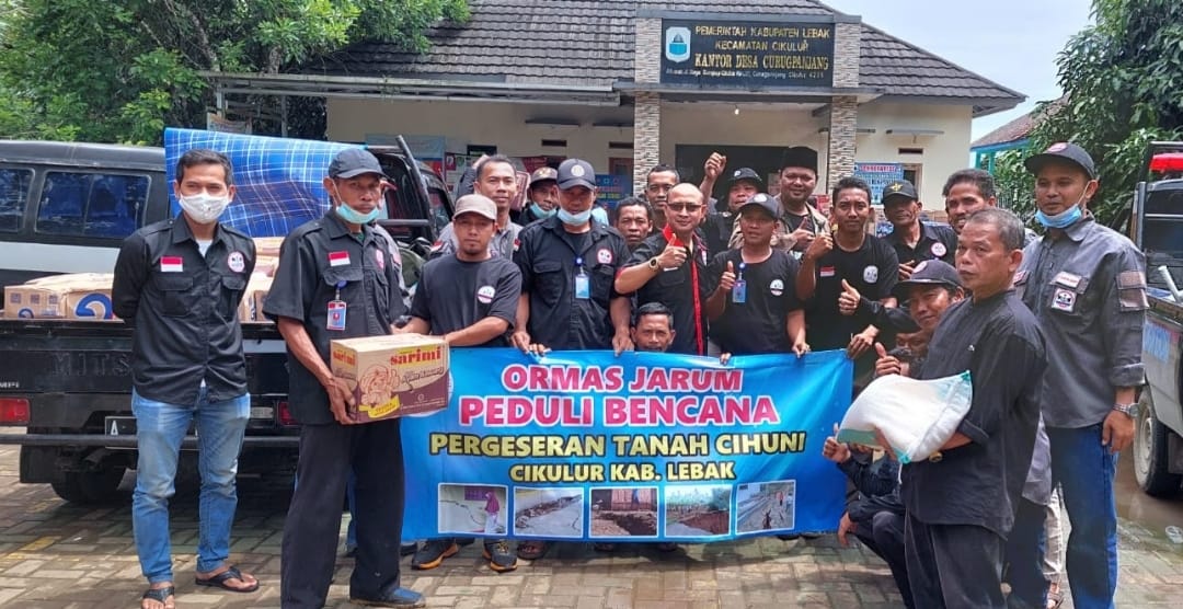 SIBERINDO.CO – Warga korban pergerakan tanah di Kampung Cihuni, Desa Curugpanjang, Kecamatan Cikulur, Kabupaten Lebak mendapat bantuan dari Organisasi Kemasyarakatan Jaringan Relawan Untuk Masyarakat (Ormas Jarum).