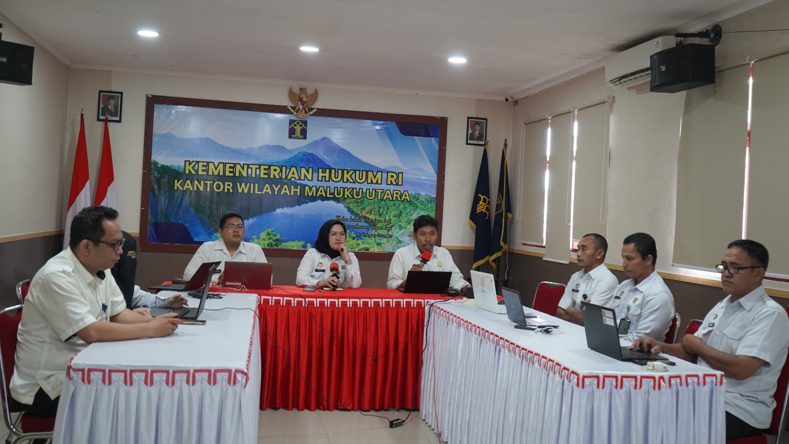 Ternate – Kantor Wilayah (Kanwil) Kementerian Hukum (Kemenkum) Maluku Utara (Malut) melalui Divisi Peraturan Perundang-undangan dan Pembinaan Hukum menggelar Rapat Harmonisasi terhadap empat Rancangan Peraturan Bupati (Ranperbup) Pemerintah Kabupaten Halmahera Utara, Rabu (4/3), bertempat di Aula Gamalama Kanwil Kemenkum Malut dan secara daring melalui Zoom Meeting.