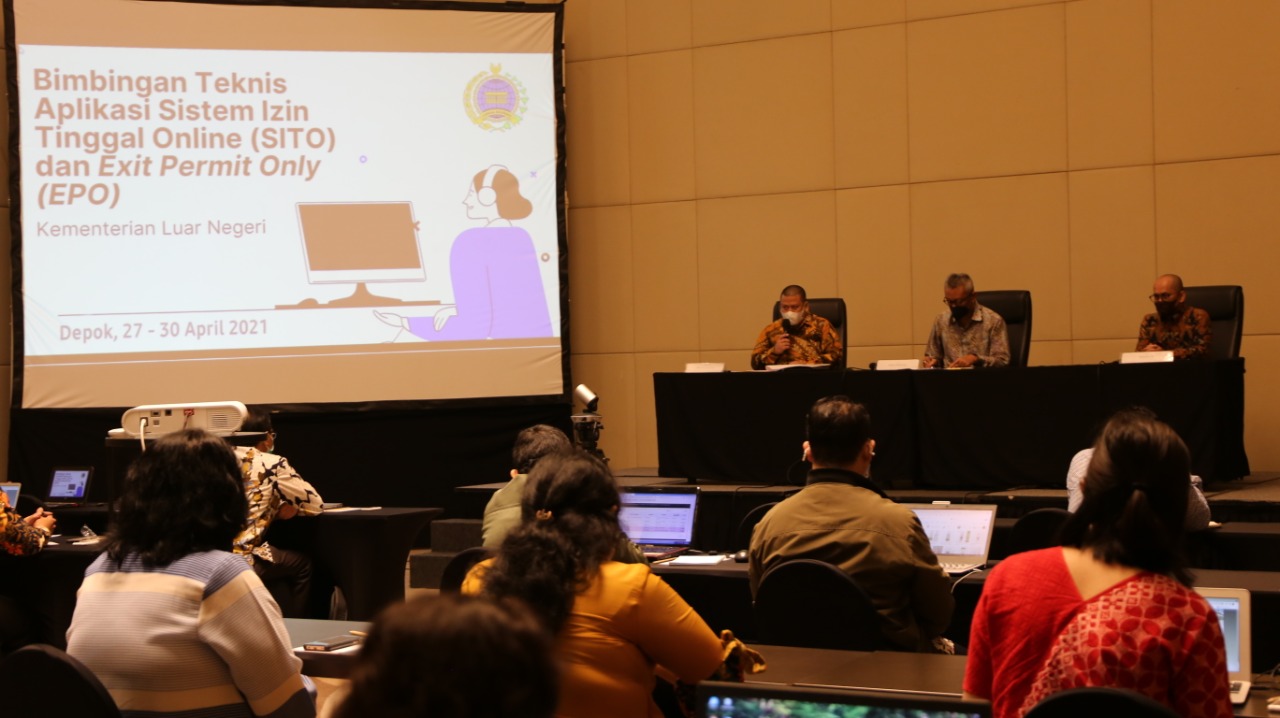 Dalam rangka untuk terus meningkatkan pelayanan, Kemlu selenggarakan ‘Bimbingan Teknis Aplikasi Sistem Izin Tinggal Online (SITO) dan Exit Permit Only (EPO)’ untuk meningkatkan kapasitas para staf (27-30/04/2021).