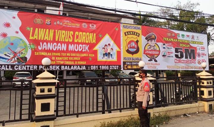 Tangerang – Jajaran Polresta Tangerang Polda Banten memasang ratusan spanduk larangan mudik di berbagai titik di wilayah hukum Polresta Tangerang. Spanduk-spanduk itu dipasang di titik-titik keramaian atau yang mudah dilihat masyarakat.