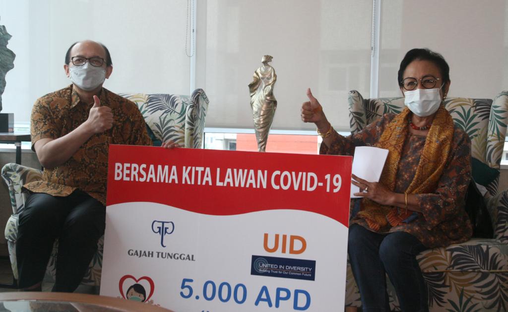 Dalam acara serah terima di RS St. Carolus Jl. Salemba Raya, Ketua Yayasan UID Tuti Hadiputranto, didampingi oleh Presiden Direktur PT Gajah Tunggal, Sugeng Rahardjo, menyerahkan secara simbolis 5000 hazmat tersebut yang diterima Direktur Utama RS St. Carolus, dr. JB. Endrotomo Sumargono, SpOT (K)