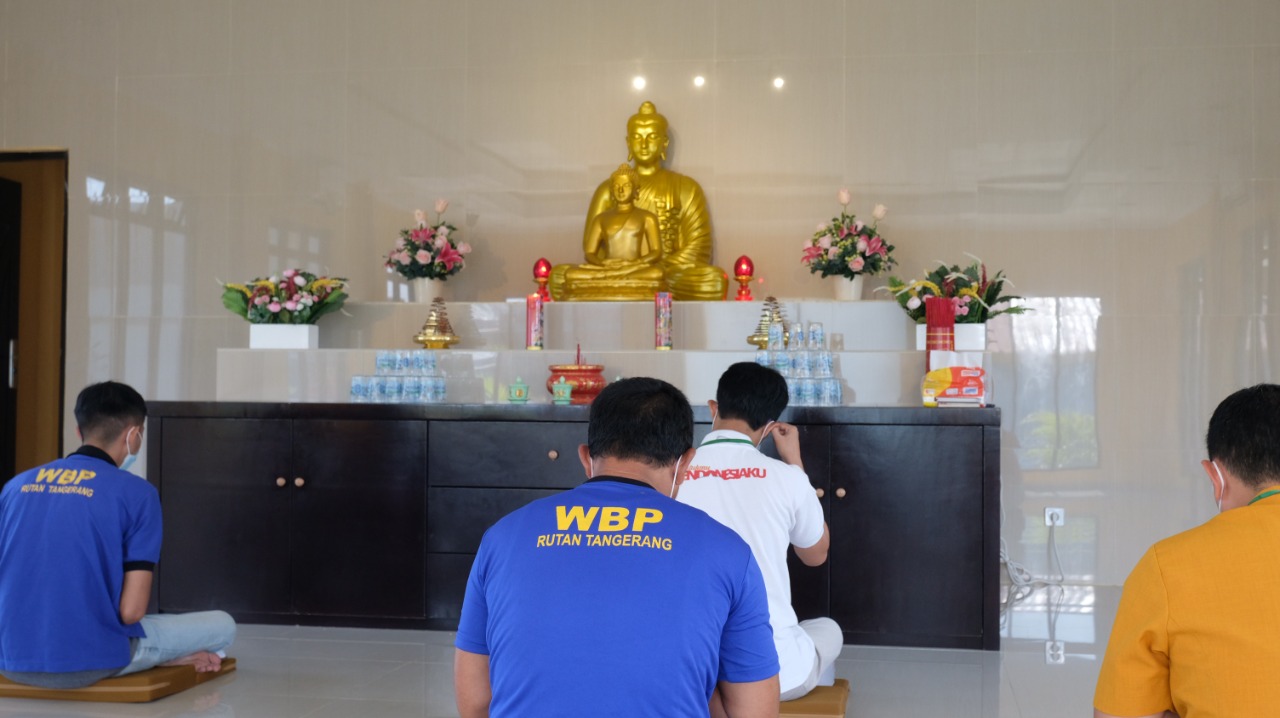TANGERANG – Warga Binaan Rutan Kelas I Tangerang yang beragama Budha, melaksanakan kegiatan sembahyang, Bertempat di Vihara Buddha Karuna Sanano, sabtu Pagi (04/06)