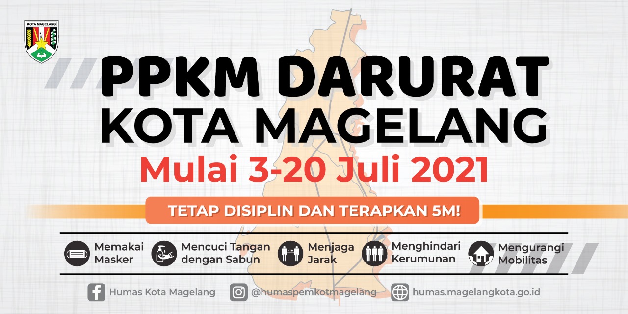 KOTA MAGELANG – Pemerintah Kota Magelang menerapkan Pemberlakuan Pembatasan Kegiatan Masyarakat (PPKM) Darurat pada 3-20 Juli 2021. Kebijakan ini tertuang dalam Instruksi Menteri Dalam Negeri (Inmendagri) Nomor 15 tahun 2021 tentang Pemberlakukan Pembatasan Kegiatan Masyarakat Darurat Covid-19 di wilayah Jawa dan Bali.