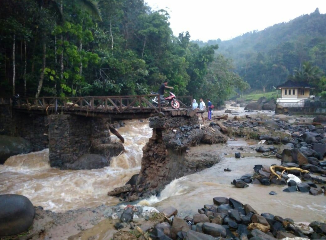 Tingginya intensitas curah hujan yang terjadi di wilayah Kecamatan Cibeber Kamis malam (03/9/2020) mulai jam 16.00 wib sampai jam 22.00 wib, Telah menghancurkan 2 (dua) jembatan penghubung antar desa Cisungsang dengan desa Situmulya dan Kujangsari.