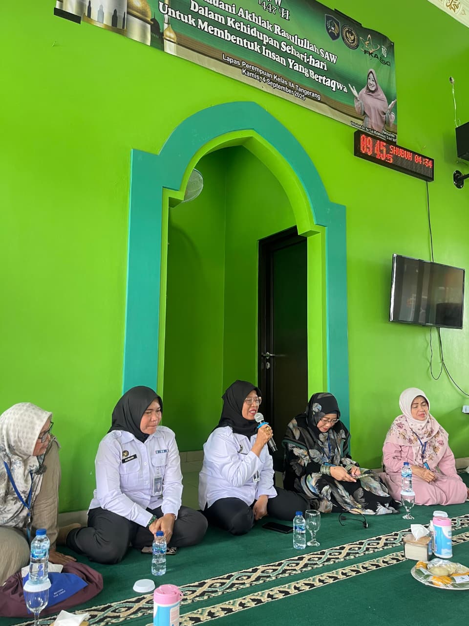 Lapas Perempuan Kelas IIA Tangerang melaksanakan kegiatan peringatan Maulid Nabi Muhammad SAW 1447 H dengan penuh khidmat. Kegiatan ini mengangkat tema “Meneladani Akhlak Rasulullah SAW dalam Kehidupan Sehari-hari untuk Membentuk Insan yang Bertaqwa”. Acara ini dihadiri oleh Kepala Lapas Perempuan Kelas IIA Tangerang, Salis Farida, beserta jajaran struktural, yakni Kasi Binadik dan Kasubsi Bimaswat. Kegiatan ini juga bekerja sama dengan ESQ selaku mitra pembinaan kerohanian Islam dan turut hadir Ustadzah Dr. Sri Tuti Rahmawati sebagai Penceramah