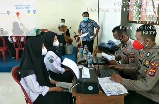 LEBAK – Kepolisian sektor ( Polsek) Cilograng Polres Lebak Polda Banten hari ini Senin (4/10/2021) bersama tiem satgas covid19 kecamatan Cilograng melaksanakan kegiatan vaksinasi kepada 64 peserta dosis 1 dan 2 untuk sasaran umum, lansia dan pra lansia bertempat di sekolah SMK Yasmi kecamatan Cilograng kabupaten Lebak provinsi Banten