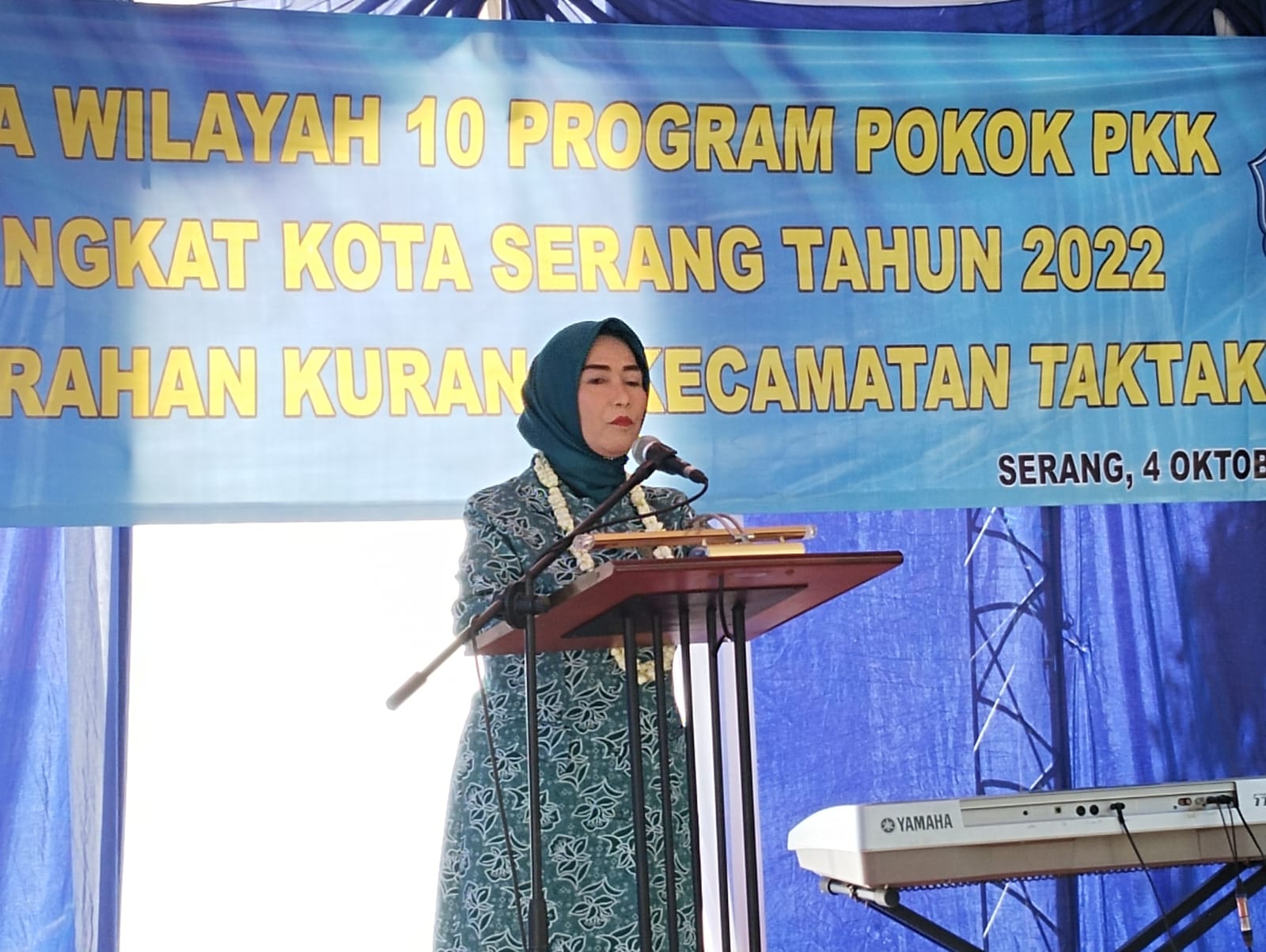 SIBERINDO.CO – Ketua TP PKK Kota Serang, Ade Jumaiah Syafrudin menghadiri acara Bina Wilayah 10 Program Pokok PKK di Kelurahan Kuranji, Kecamatan Taktakan, Kota Serang, Selasa (4/10/2022).