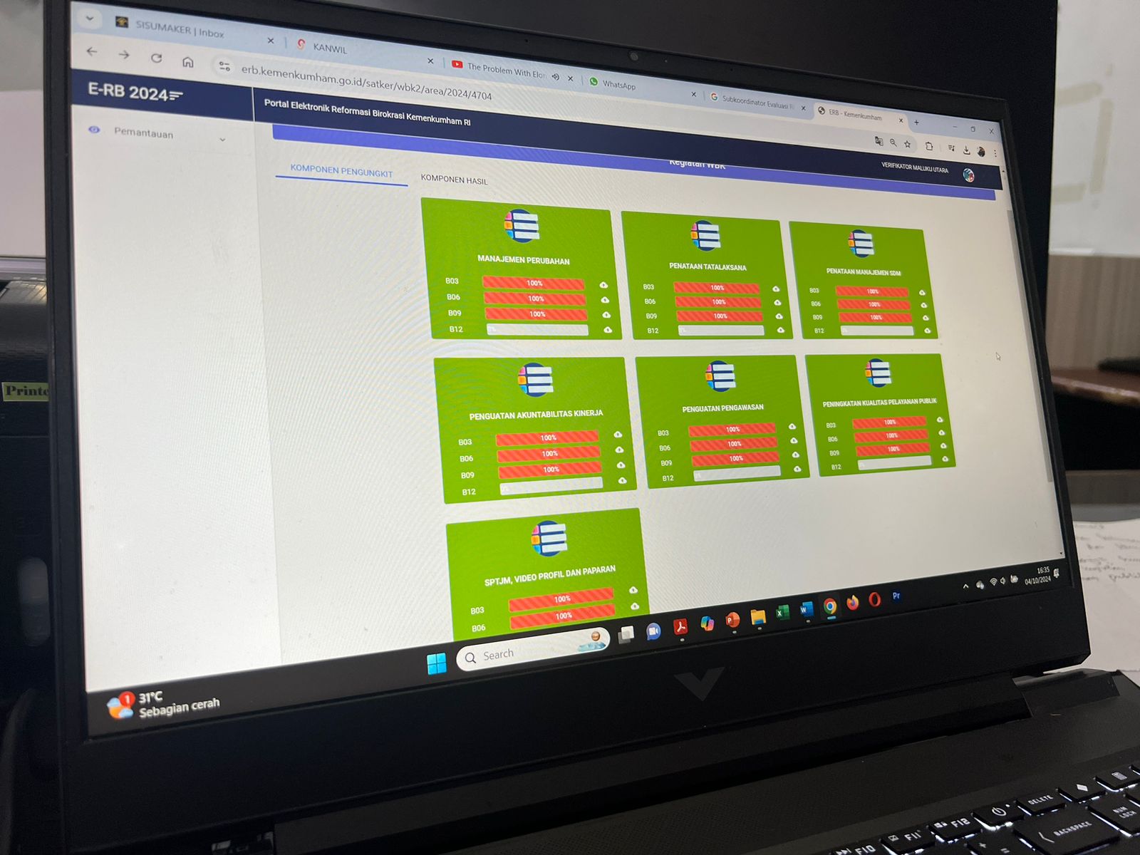 Capaian optimal tersebut terlaksana oleh kanwil bersama 15 Unit Pelaksana Teknis (UPT) pemasyarakatan dan imigrasi Kemenkumham Malut pada periode B09 tahun 2024 pada aplikasi erb.kemenkumham.go.id.