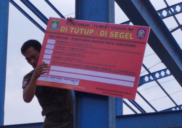 Siberindo.co, Kota Tangerang-Satpol PP Kota Tangerang menyegel bangunan gudang yang berada di Kelurahan Batu Ceper, Kecamatan Batu Ceper, Kota Tangerang, karena tidak mengantongi Izin Mendirikan Bangunan (IMB).