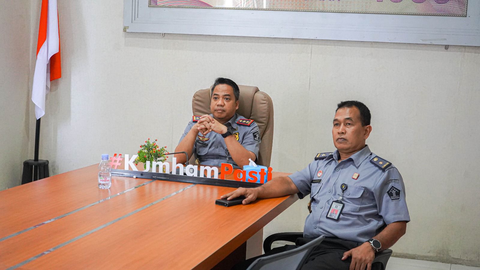 Ternate – Kepala Kanwil Kemenkumham Maluku Utara, Andi Taletting Langi bersama Kepala Divisi Administrasi, Slamet Pramoedji mengikuti secara virtual Rapat Kerja antara Menteri Hukum, Supratman Andi Agtas dengan Komisi XIII DPR RI, Senin (4/11).