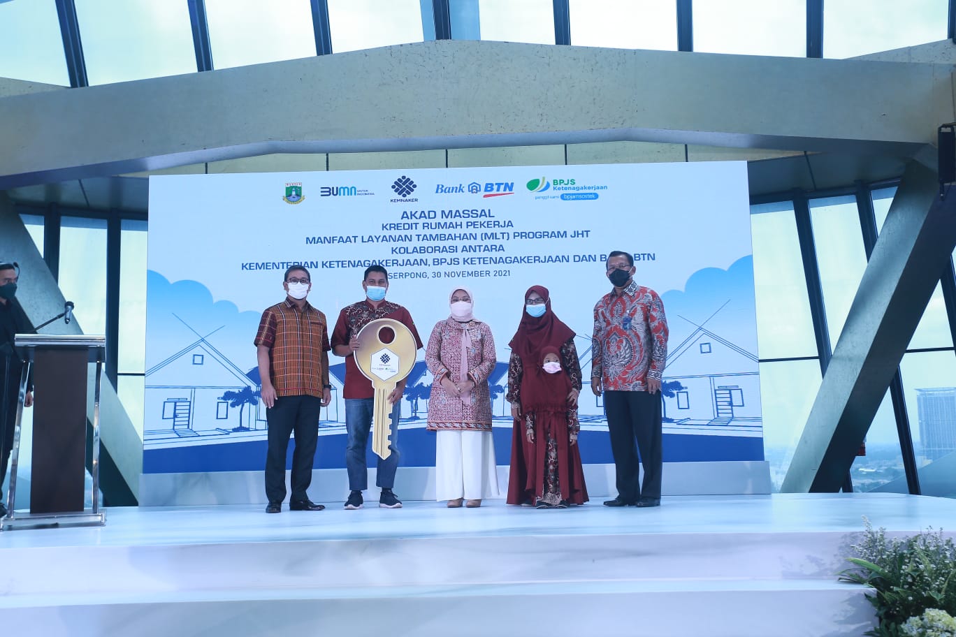 BPJS Ketenagakerjaan (BPJAMSOSTEK) bersama Kementerian Ketenagakerjaan RI dan PT Bank Tabungan Negara (Persero) menyelenggarakan akad kredit massal bagi 150 pekerja yang mendapatkan Manfaat Layanan Tambahan (MLT) Program Jaminan Hari Tua (JHT) dari BPJAMSOSTEK.