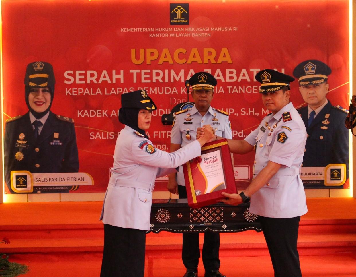 TANGERANG – Lapas Pemuda Kelas IIA Tangerang kini memiliki pemimpin baru. Hal ini telah diresmikan dengan dilaksanaannya Serah Terima Jabatan Kepala dari Pejabat Lama Kadek Anton Budiharta kepada Pejabar Baru Salis Farida Fitriani yang telah ditunjuk oleh Kepala Kantor Wilayah Kementerian Hukum dan HAM Banten dalam Surat Perintah sebagai Pelaksana Tugas Kepala Lembaga Pemasyarakatan Pemuda Kelas IIA Tangerang.