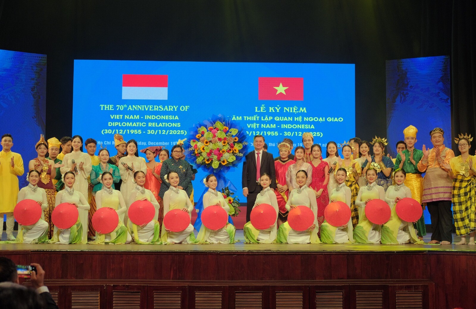 Konsulat Jenderal Republik Indonesia di Ho Chi Minh City turut mendukung kegiatan bersama yang dipersiapkan oleh People’s Committee of Ho Chi Minh City dan Department of Foreign Affairs of Ho Chi Minh City (DoFA HCMC), serta turut pula didukung oleh Department of Culture and Sport of Ho Chi Minh City (DoCS HCMC), yaitu acara perayaan 70 tahun hubungan diplomatik Indonesia-Vietnam (30 Desember 1955-30 Desember 2025), berupa pentas seni dan budaya kedua negara pada 19 Desember 2025 di gedung bersejarah Saigon Opera House, Ho Chi Minh City.