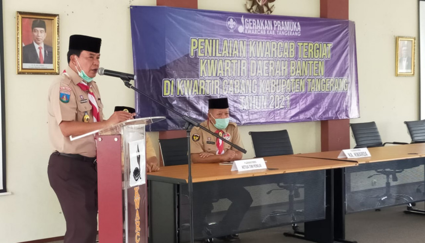 Kwartir Cabang (Kwarcab) Gerakan Pramuka Kabupaten Tangerang menerima kunjungan tim penilai Kwarcab Tergiat dari Kwartir Daerah (Kwarda) Banten, Rabu (03/02/2021).