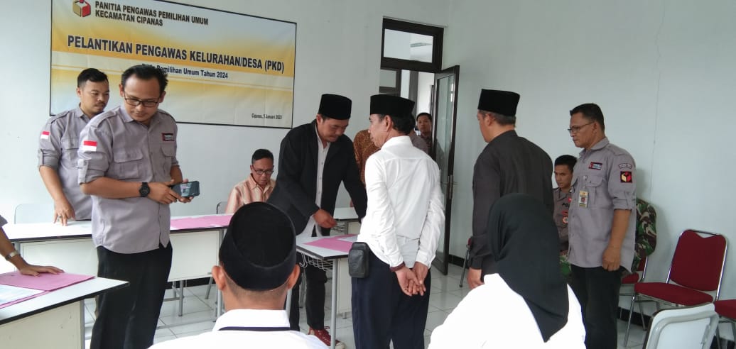 Pelantikan Pengawas Kelurahan/ Desa (PKD) Panwaslu Cipanas, di pusatkan di aula Alfarhan, desa Sipayung, Kecamatan Cipanas, minggu (5/1/2023)